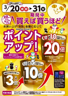 買えば買うほどポイントアップ、最大20倍でお得ですよ~