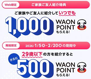 Webより新規入会で、もれなく1000 WAON POINT