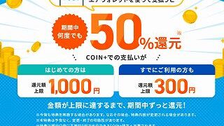 エアウォレット(AirWALLET)・COIN+で50%還元キャンペーン実施です。 新規なら最...