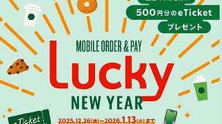 スターバックスで、モバイルオーダーで注文した人の中から抽選で合計1万名に500円分のeTicketが当たるキャンペーンです。...