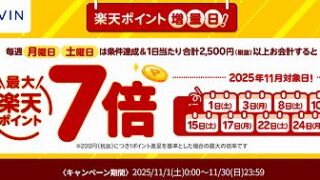 楽天ポイント×西友・リヴィン・サニーで、毎週月曜日・土曜日は条件達成で楽天ポイント最大7倍キャンペーンです。 (以前は最大10倍でしたが最...