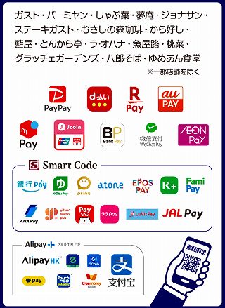 ガストで利用できるキャッシュレス等の支払い方法