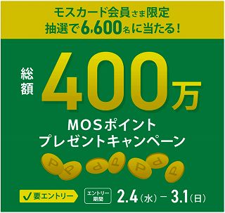 ◆【モスカード会員限定】総額400万MOSポイントプレゼントキャンペーン