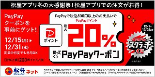 PayPayクーポン・松屋(松弁ネット)※ミニアプリ含む:20%付与(最大)