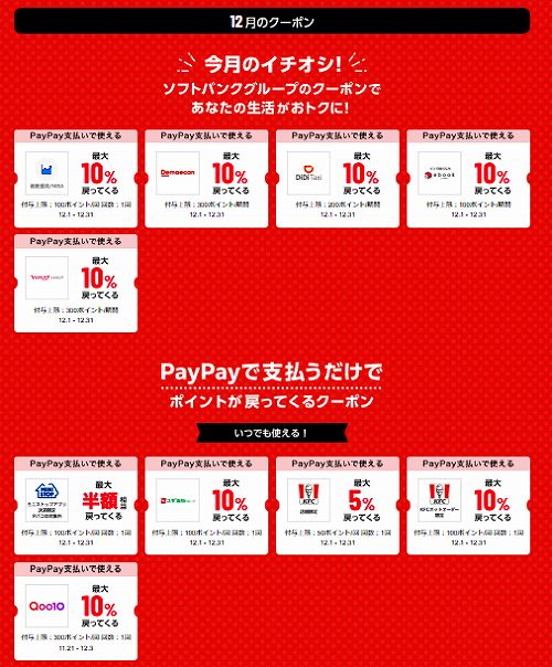 ※PayPayクーポンは基本的に毎週月曜日に更新です。新しいものが出ているかもしれません。