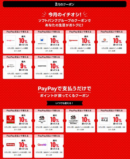 ※PayPayクーポンは基本的に毎週月曜日に更新です。新しいものが出ているかもしれません。
