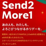 700円以上のスターバックスeGiftを2回贈ると、自分にもプレゼント(500円ドリンクチケット)してもらえるSend2 More1キャンペーンです。